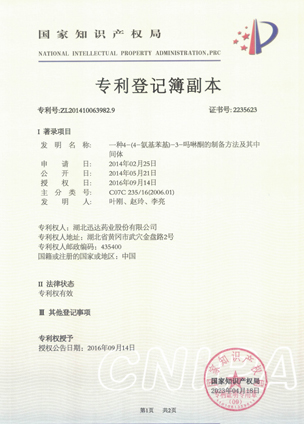 公司擁有一支高素質科研隊伍,具備專業而高效的研發(fā)能力。近幾年,共取得科技成果30項,其中9項獲國家發(fā)明專利,2項獲湖北省科技進步獎,開發(fā)新產品8個,綠色合成、手性合成和催化等技術引領行業發(fā)展。主要銷往歐美、日本、韓國、中東、印度等40多個國家和地區。