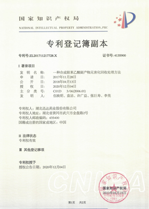 湖北迅達藥業股份有限公司是專業從事醫藥原料藥及中間體生產經營的國家重點高新技術企業,也是國家 4A 標準化良好行為企業、湖北省智能制造試點示范企業、湖北省國際科技合作基地、湖北省信息化與工業化融合試點示范企業、湖北省創(chuàng)新型企業、湖北省上市后備“金種子”企業、省級“專精特新”企業、上云標桿企業。公司被評為湖北省醫藥工業五十強、湖北省醫藥行業創(chuàng)新型企業十強、湖北省醫藥行業出口型企業十強、湖北省優(yōu)秀企業、湖北省“重合同守信用”企業、湖北省模范勞動關系和諧企業、湖北知識產權示范企業、中國外貿出口先導指數樣本企業。